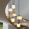 The Legier family of lamps was designed by Corrado Dotti and produced by the Tony brand. Inspired by the classic shapes of Murano glass forfumers, ampoules with spherical shapes that are elegant and fragile in appearance but resistant and functional, often used as decorative elements in every room of the house. The lamps can have a base in copfor, brushed brass or painted while the diffuser is in mouth-blown glass with harmonious and decorative shapes in smoke or opaline white. Versatile, elegant and resistant, they can be placed on a table, on the ceiling, on the wall and suspended, both in the single version and in the chandelier version with four or six elements. They give class and refinement to all environments, from the most sober to the most sumptuous. The light source is integrated LED but the opal white glass version can be available with an E27 fitting.