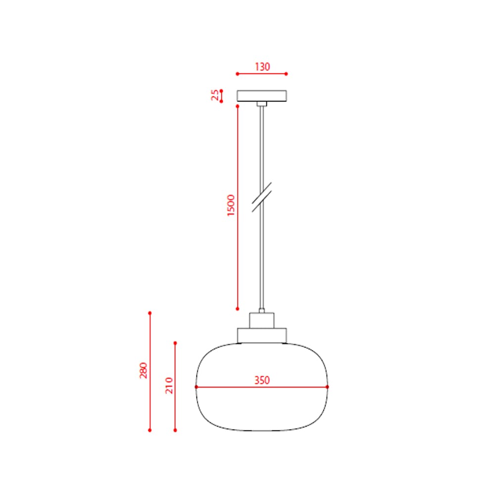 Light source: LED 10W 2700K – 1200 lumens – 220/240V – Phase cut dim. Dimensions : Ø 35 H 28 cm
