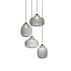 The Legier family of lamps was designed by Corrado Dotti and produced by the Tony brand. Inspired by the classic shapes of Murano glass forfumers, ampoules with spherical shapes that are elegant and fragile in appearance but resistant and functional, often used as decorative elements in every room of the house. The lamps can have a base in copfor, brushed brass or painted while the diffuser is in mouth-blown glass with harmonious and decorative shapes in smoke or opaline white. Versatile, elegant and resistant, they can be placed on a table, on the ceiling, on the wall and suspended, both in the single version and in the chandelier version with four or six elements. They give class and refinement to all environments, from the most sober to the most sumptuous. The light source is integrated LED but the opal white glass version can be available with an E27 fitting.
