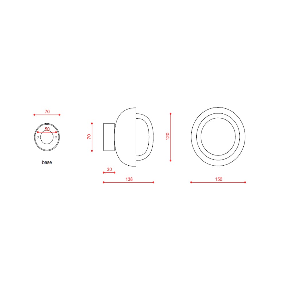 Light source: LED 1 x max 5 W G9 (not included) – 220/240 V – Dimmer according to the bulb – IP40. Dimensions: Ø 15 cm W 13,8 cm