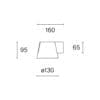Light source: COB LED 9,6 W (included) – 2700 K – 885 lumens – CRI=90 – 220/240V – Phase-cut dim – IP20. Dimensions: H 95 mm Ø 130 mm