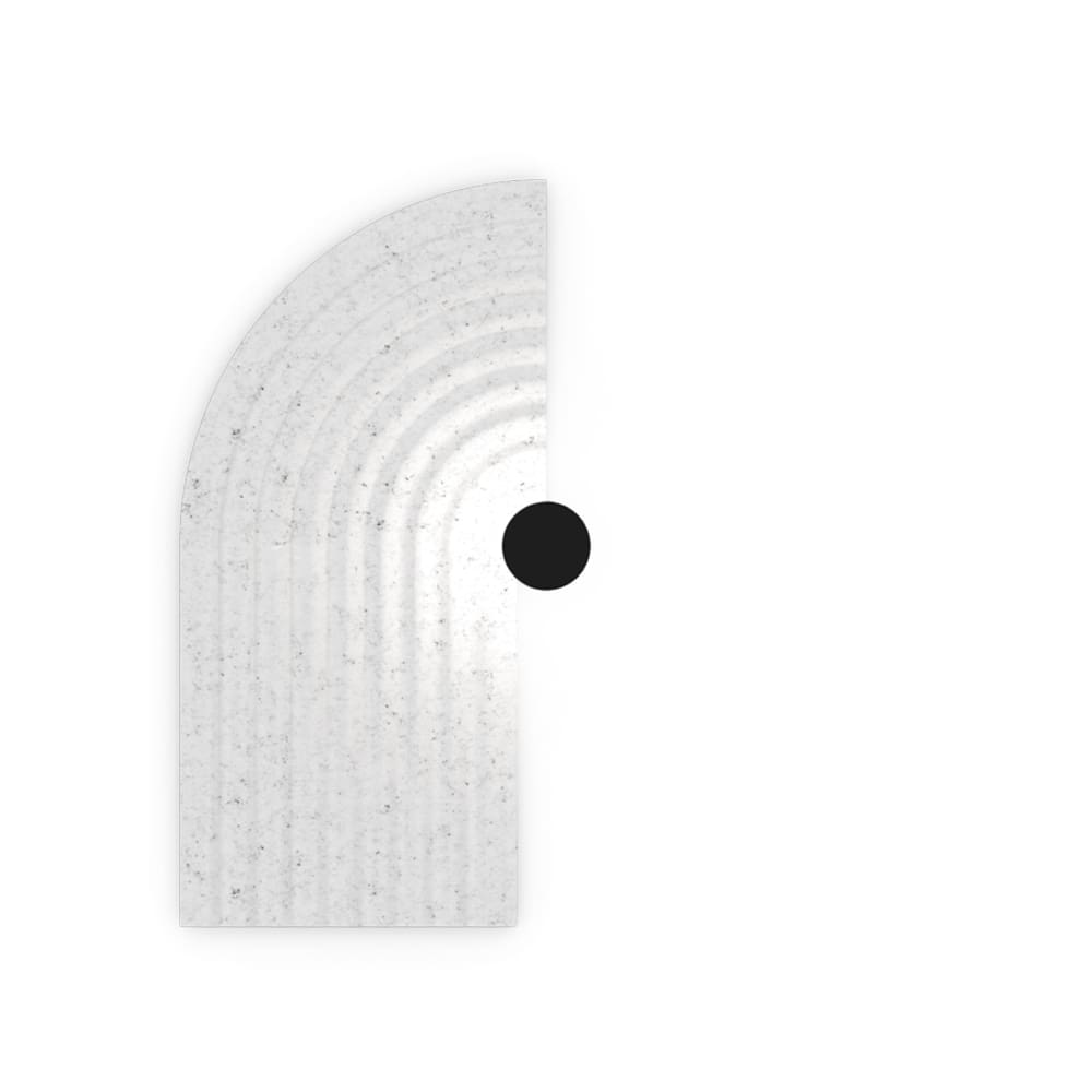 TAPIS SOFT FLEXFY 4.0 by Wever e Ducré is a wall lamp that combines aesthetics and functionality, perfect for modern interiors. Made from high-quality PET felt, a 100% recyclable material with sound-absorbing properties, it is available in finishes such as white felt, limestone grey, marble grey, and oxide red. The semicircular design with a grooved surface (width 325 mm, height 650 mm, depth 120 mm) provides indirect and diffused lighting, creating a warm and inviting atmosphere. Equipped with a 9W integrated LED light source with a color temperature of 2700K and a luminous flux of 390 lm, it ensures soft and uniform illumination. Compatible with the FLEXFY modular system, TAPIS SOFT FLEXFY 4.0 integrates seamlessly into residential or commercial spaces, enhancing both acoustic and visual comfort.