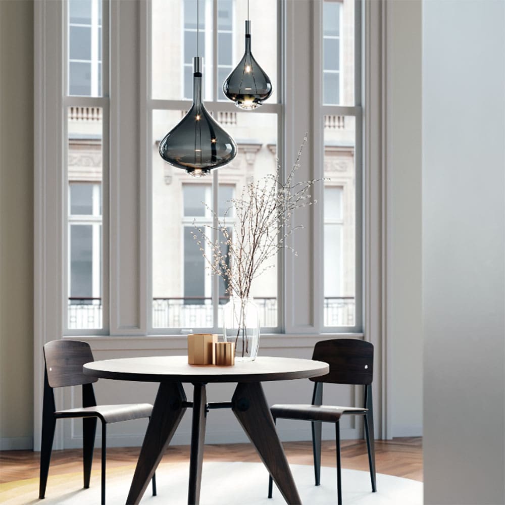 In Sky–Fall, traditional glass processing techniques embrace the most advanced LED technologies. Designed by Studio Italia Design and produced by the Lodes brand, the shape of Sky–Fall excites by recalling ancient decanters in precious blown glass. Its function amazes thanks to the innovative double LED source which diffuses direct and indirect light. Available in two sizes and four finishes, and in versions with a color temperature of 2700 K or 3000 K*, Sky–Fall furnishes both when turned on and off. The new Sky–Fall Round is now added to the family: a further variant that features a spherical shaped diffuser available in two sizes and four finishes, including the new and precious golden sage. The new finish also extends to Sky-Fall in both sizes.