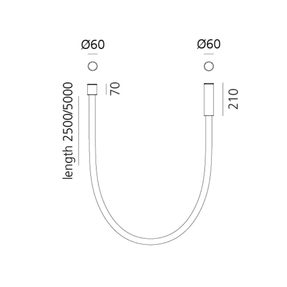La Linea is a flexible light tube capable of rotating freely in space according to undefined geometries, designed by BIG -Bjarke Ingels Group and produced by the Artemide brand. It fits easily into indoor and outdoor spaces thanks to fasteners that disappear in the cross section, allowing countless applications in a wide variety of locations thanks to an unprecedented combination of factors such as light quality, IP protection rating and flexibility. Available in lengths of 2.5 and 5 metres. Linea 25 increasingly becomes a communicative as well as functional tool, adding values and meanings to its light through the expressiveness of its graphic sign.