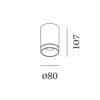 Light source: LED 11,1 W – 3000 K – 410 lumens – 220/240 V – phase-cut dimmer – IP65. Dimensions: H 107 mm Ø 80 mm