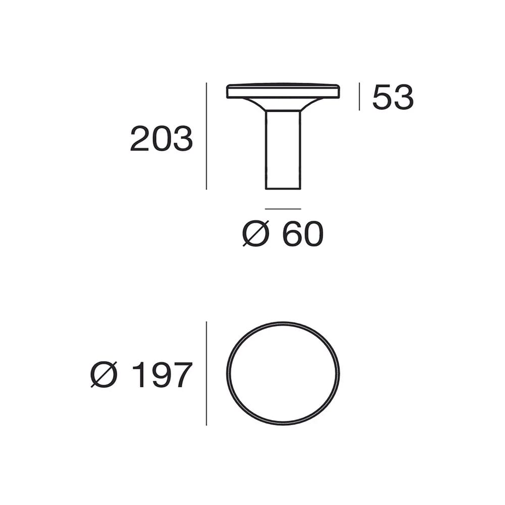 Light source: 18 topLED 12W – 1350 lumens – 3000K – CRI=80 – 220/240 V – IP65. Dimensions: H 203 mm Ø 197 mm