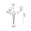 Light source: LED 6W – 380 lumens – 3000 K – 220/240V – IP65. Dimensions: H 418 mm Ø 80 mm