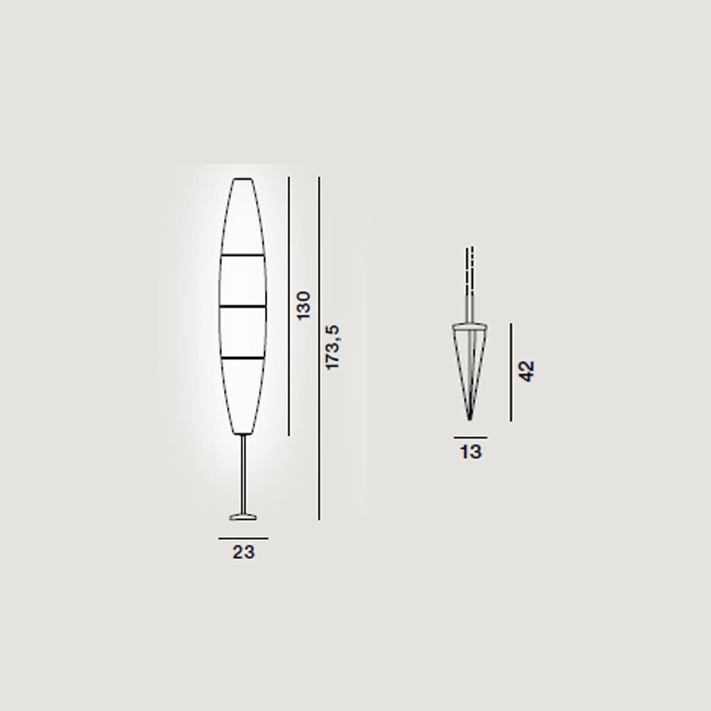 Light source: Max 1x46W E27 – IP65 – IP44. Dimensions: Ø 23 cm H 173,5 cm