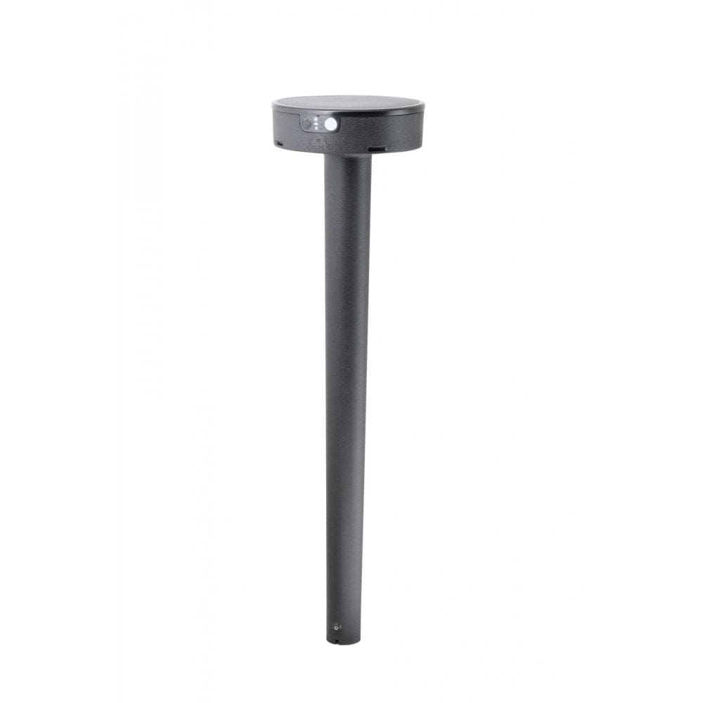 TÜV-CB certified SOLAR bollard with motion sensor and replaceable battery. Made of shockproof resin, UV stabilized, resistant to rust and corrosion. Suitable for ground installation with spike or dowels. Solar module equipped with switch to select the desired Kelvin temperature (3000K – 4000K – 6500K) and the mode of use (Summer-Winter-Sensor). Insulation class III, degree of protection IP55.