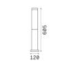 Light source: LED SMD 9,5 W (bulb included) – 3000 K – 1150 lumens – CRI>80 – 220-240V – IP44. Dimensions: H 605 mm Ø 120 mm