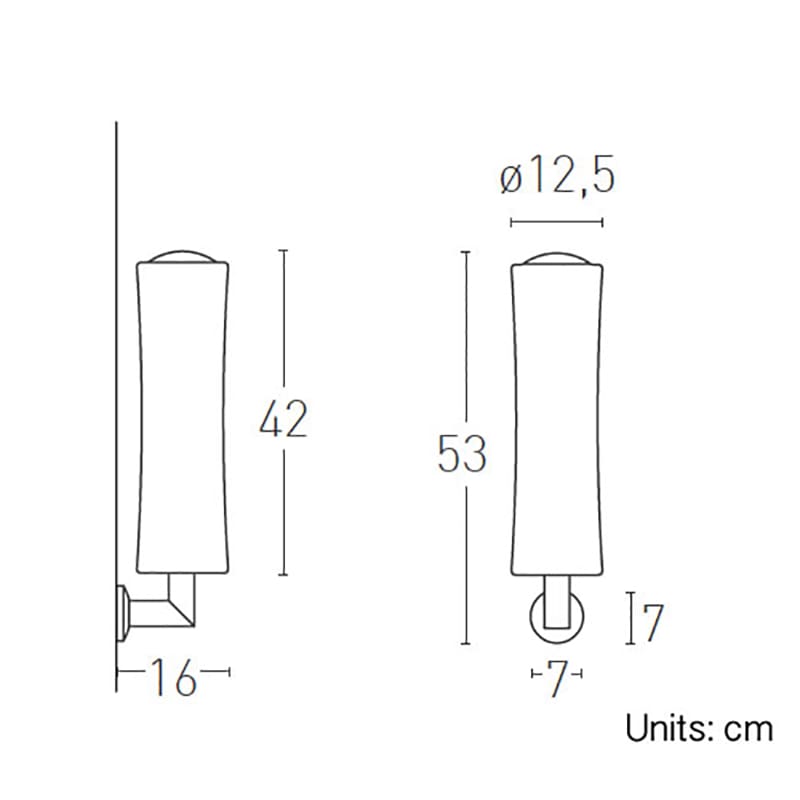 Light source: LED E27-E26 (not included) – 110/120-or-220/240V – IP54 – . Dimensions: W 16 cm Ø Body: 12,5 cm Ø canopy Att. wall: 7 cm