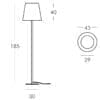 Light source: 1 x 15W E27 (not included) – IP55. Dimensions: H 185 cm Ø 43 cm Ø base 30 cm
