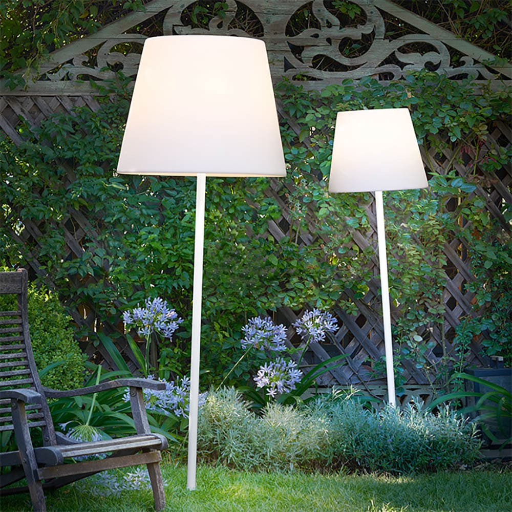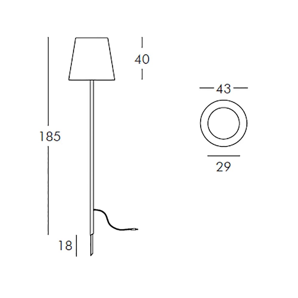 Fiaccola Ali Baba is a floor lamp capable of giving a touch of luminous elegance to gardens and outdoor areas, thanks to the base that ends with a stake to be planted in the ground. The polyethylene lampshade is embellished with the arabesque texture in relief across the entire surface, which characterizes the entire Ali Baba collection. The floor lamp has a stainless steel base, resistant to atmospheric agents and which makes it suitable for any outdoor setting in private homes, contracts and events.