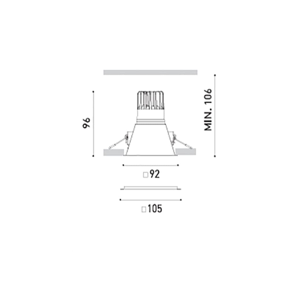 Light source: LED 7W – 3000 K – 940 lumens – CRI>90 – 220-240V – Phase Cut Dimmer – IP20. Dimensions: L 10,5 cm W 10,5 cm H 10,6 cm