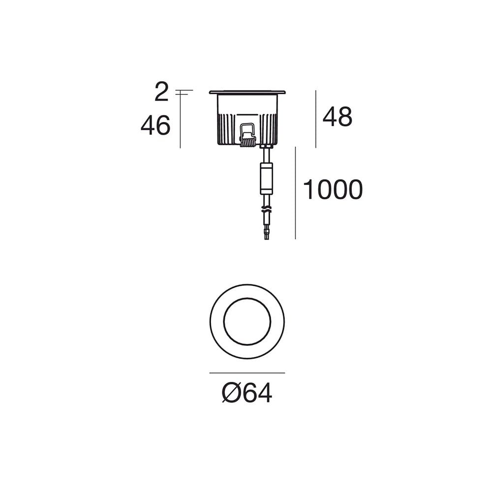 Light source: 1 x powerLED 4W – 490 lumens – 3000 K – CRI=80 – 350 mA – IP68. Dimensions: H 48 mm Ø 64 mm
