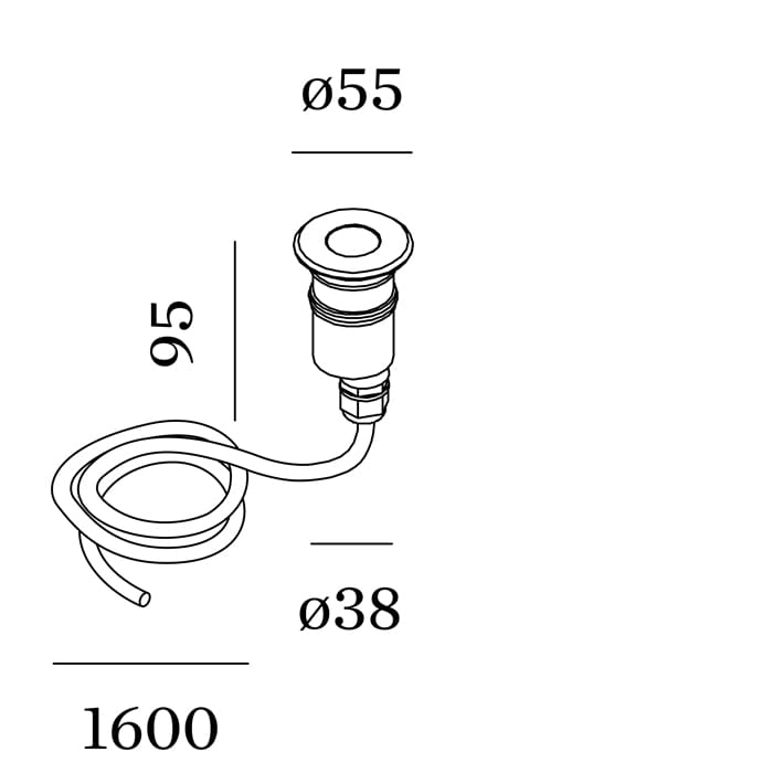 Light source: LED COB 5W 3000k – 275 lumens – CRI ≥ 80 IP67 – 220 240 V – phase cut dimmer. Dimensions: Ø 55mm