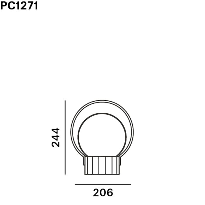 Light source: LED 2.8W 2700K – 12V – IP44 – RA80+ – dimmable – Dimensions: Ø. 20,6 cm – P. 20,6 cm – H. 24,4 cm