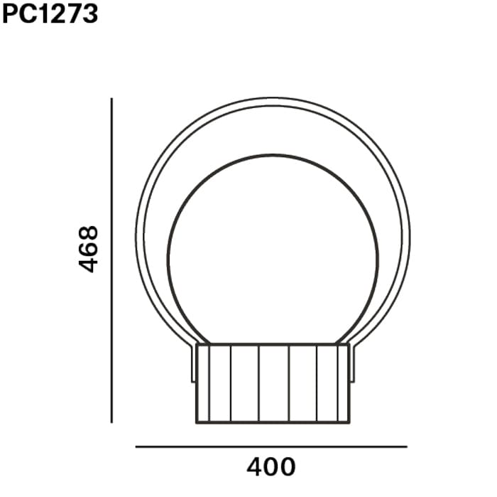 Light source: LED 4W 2700K – 12V – IP44 – RA80+ – dimmable – Dimensions: Ø. 40 cm – P. 40 cm – H. 46,8 cm