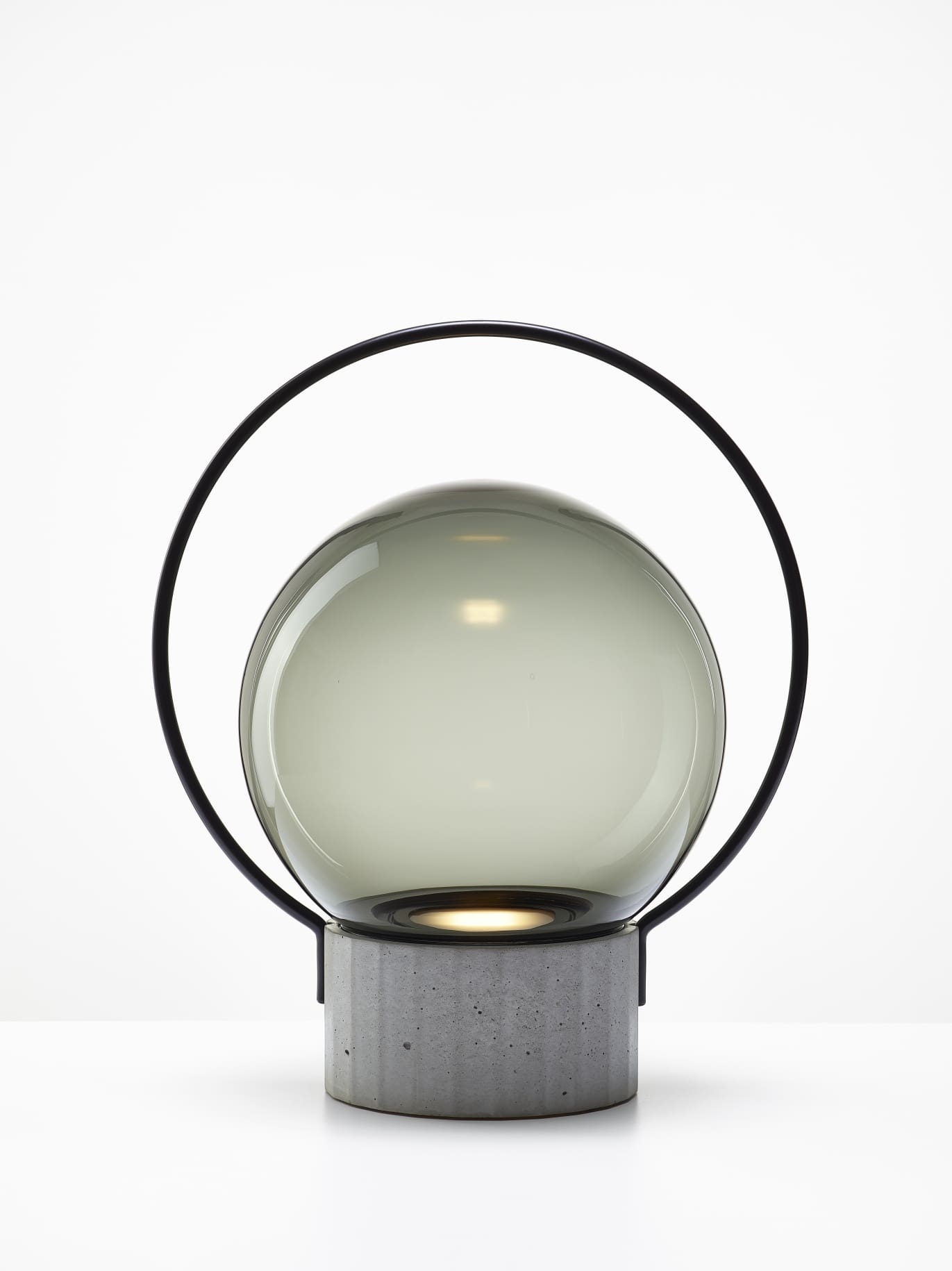 SFERA PORTABLE PC1273 large – table – smoke grey transparent glass – high performance concrete natural base and matt black body – outdoor