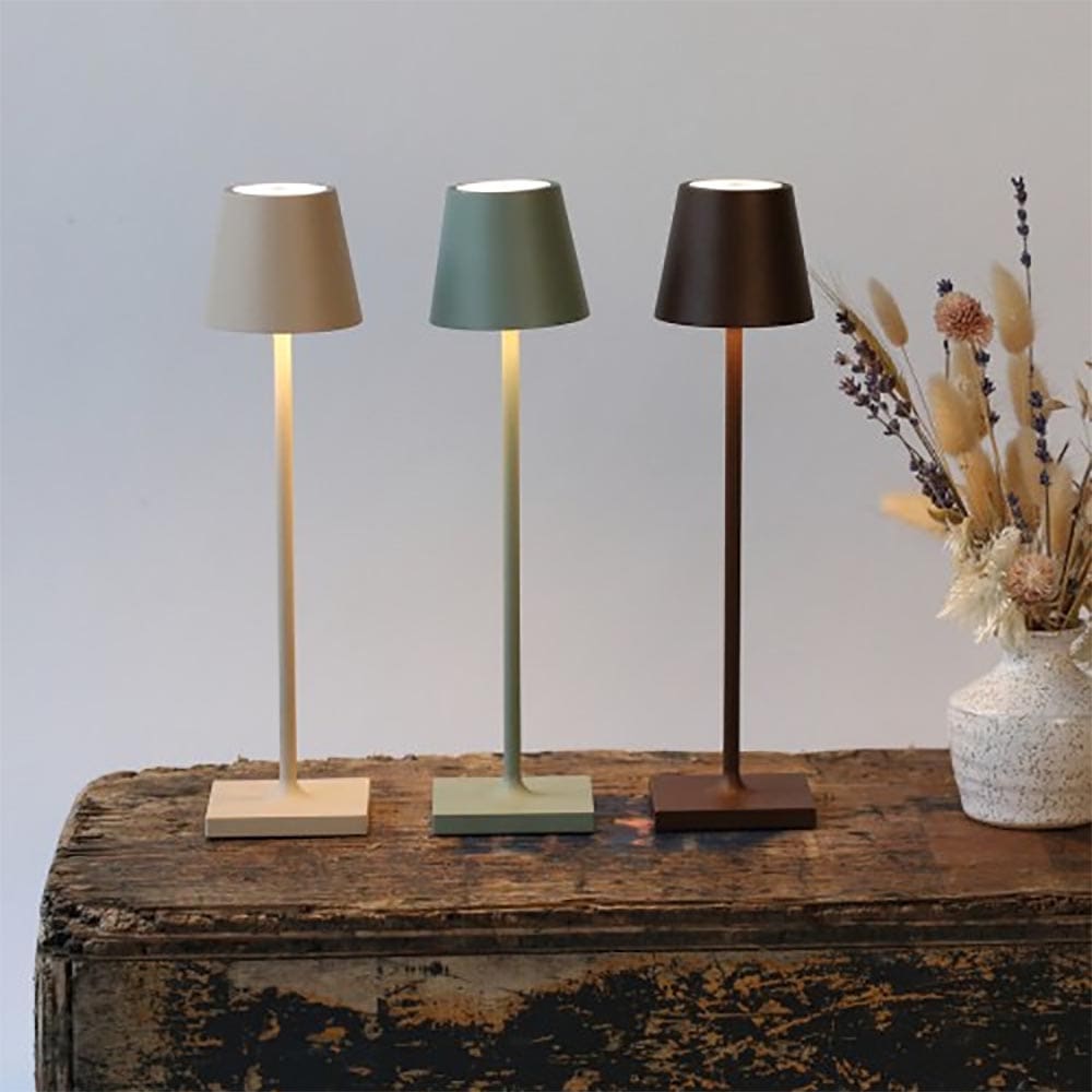 POLDINA MICRO PRO is a rechargeable, compact and versatile table lamp, perfect for adding a touch of bright design to indoor and outdoor environments. Made with a painted aluminum body and a polycarbonate diffuser, this LED lamp combines minimalist aesthetics and functionality. It is equipped with a contact charging base for convenient wireless use. Touch system: On, off and adjustment of light intensity and color temperature (2200K, 2700K, 3000K) via a convenient touch button on the top. Water resistant, with IP65 protection rating, POLDINA MICRO PRO is ideal for use in outdoor and indoor environments, ensuring resistance to atmospheric agents. Long battery life, thanks to the integrated battery, offers an autonomy of approximately 7-8 hours on a single charge. Versatility, suitable for outdoor dinners, events or as an accent light for any living space. A modern, practical and portable lighting solution for those looking for flexibility and style in a single product.