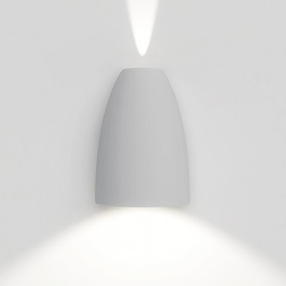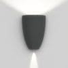 Luminaire with 2 combined light beams: the large one with lighting function and the narrow one with decorative function. Wall installation: the luminaire can be installed with the main beam directed downwards or upwards according to the type of lighting required (direct or indirect). Materials: projector composed of a body in reinforced polymer and lenses in PMMA , cap and terminal block in die-cast aluminum EN AB-47100, tempered and silk-screened glass with a thickness of 4 mm.