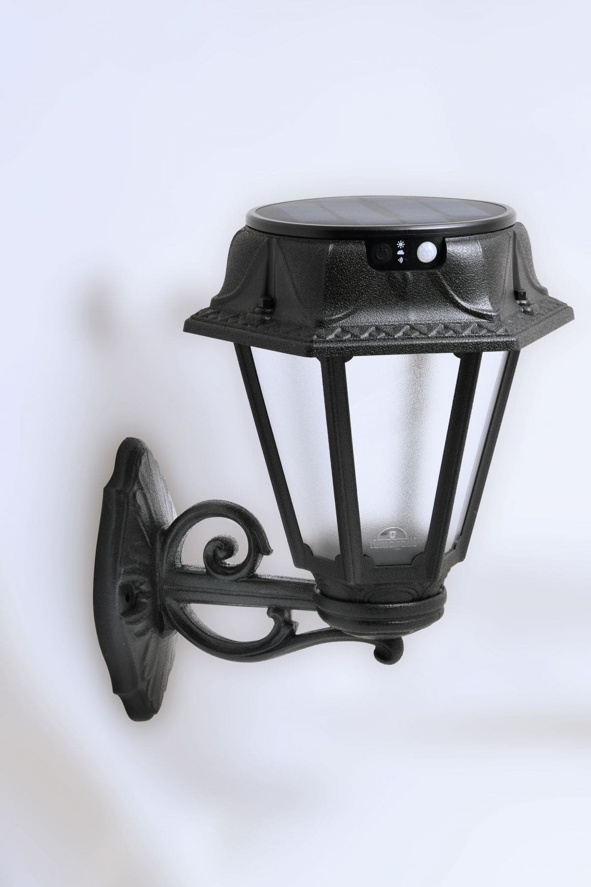 Classic style SOLAR lantern with motion sensor and replaceable battery. Made of impact-resistant resin material, UV stabilized, anti-rust and anti-corrosion. Modular construction suitable for pole and wall installation. Equipped with TÜV-CB certified adjustable Kelvin LED solar module, adjustable in three different working modes. Automatic ON/OFF. Insulation class III, IP55 degree of protection.