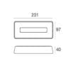 Light source: 72 topLED 7.8W – 1246 lumens – 3000 K – CRI=80 – 198-264 V – IP65. Dimensions: H 40 mm L 231 mm W 97 mm