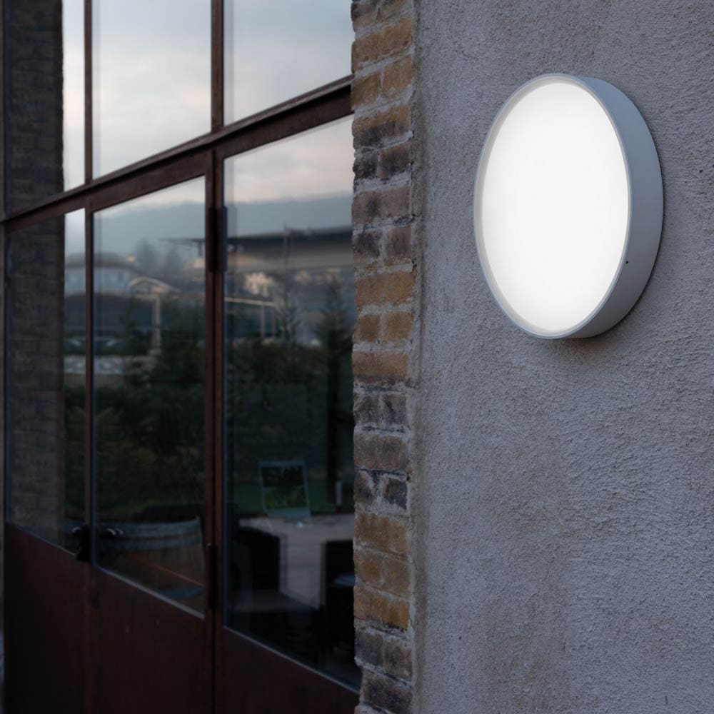Ola 330 by Lombardo is a circular wall or ceiling lamp, ideal for outdoor environments due to its durability and resistance. Made with a polycarbonate base and shockproof PMMA diffuser, it provides optimal protection against UV rays with triple stabilization and PoliGLASS finish. Silicone gaskets ensure the maintenance of the IP66 protection level, making it perfect for withstanding harsh weather conditions. Ola 330 features a dimmable mains-powered LED, allowing for brightness adjustment. The closure system with hexagonal head screws ensures easy installation and security. This wall/ceiling light is perfect for those seeking elegant, functional, and long-lasting outdoor lighting.