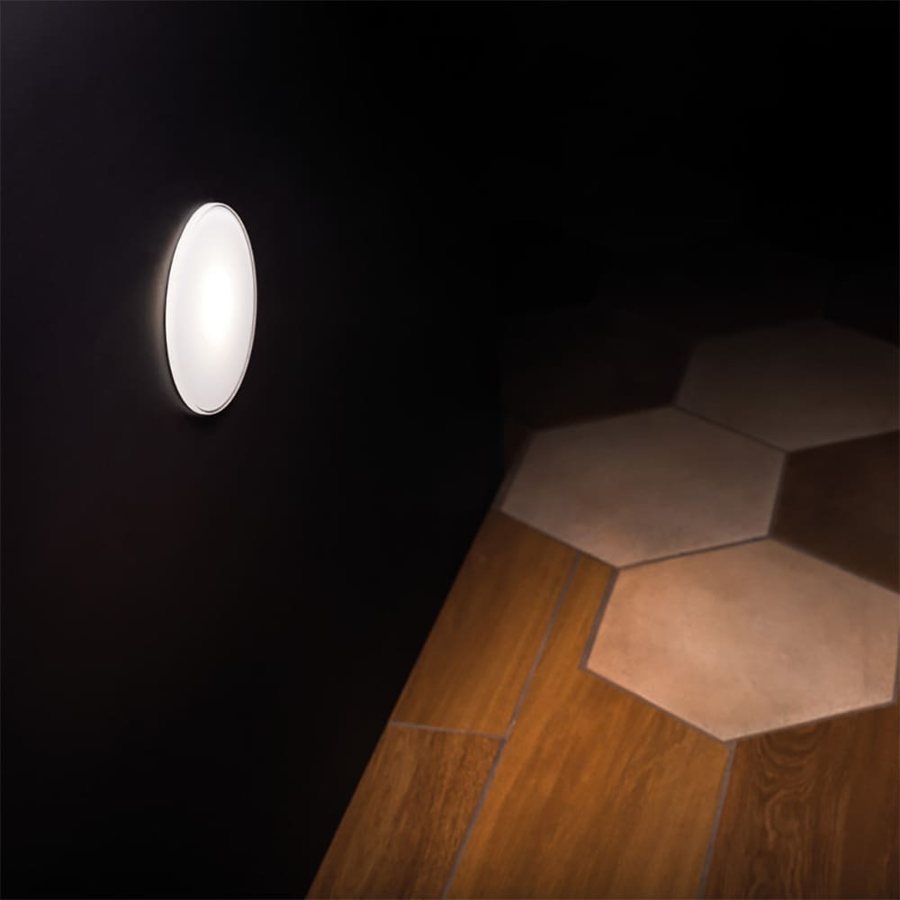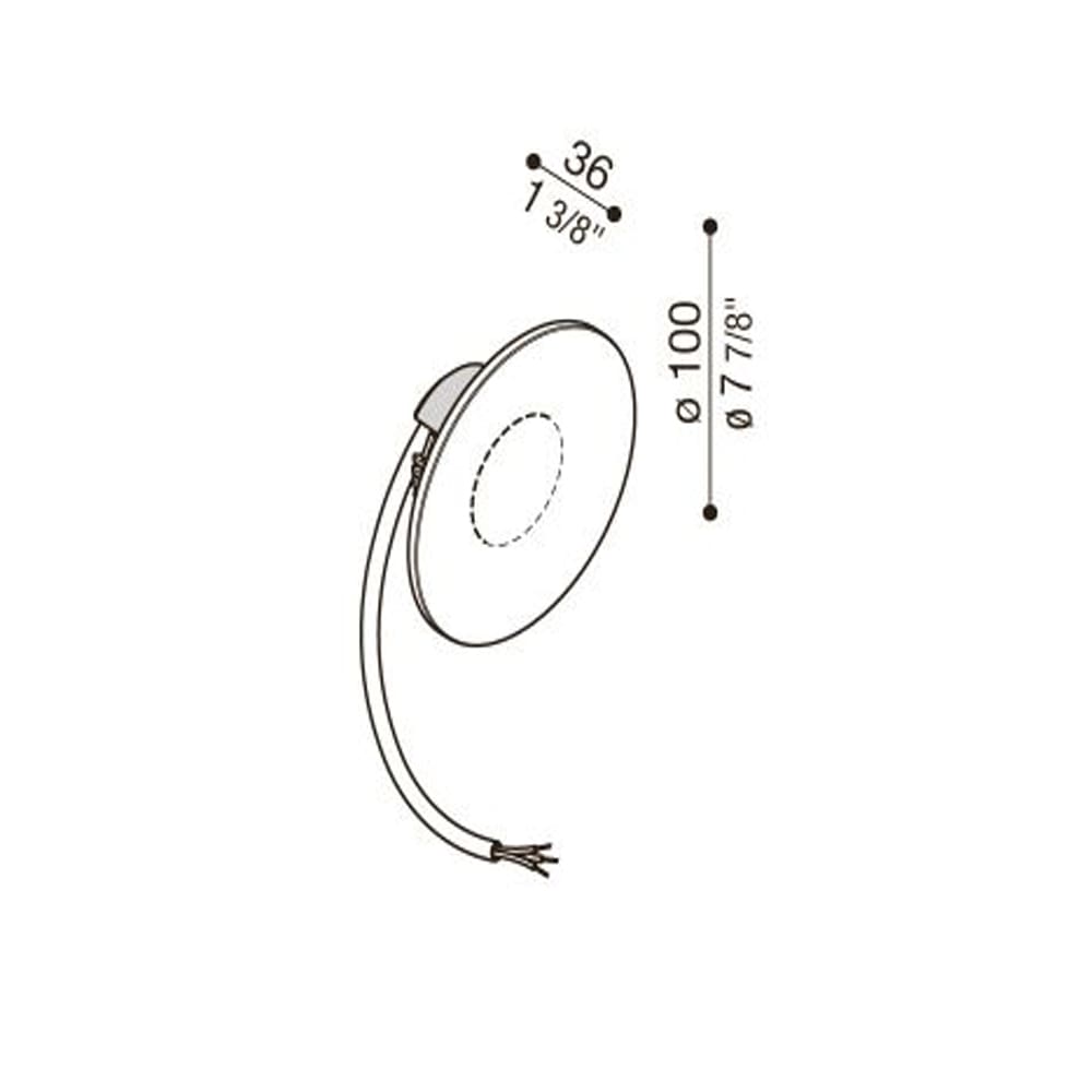 Light source: LED 2W – 3000 K – 200 lumens – dimmable – 220-240V – IP66. Dimensions: Ø 10 cm W 3,6 cm