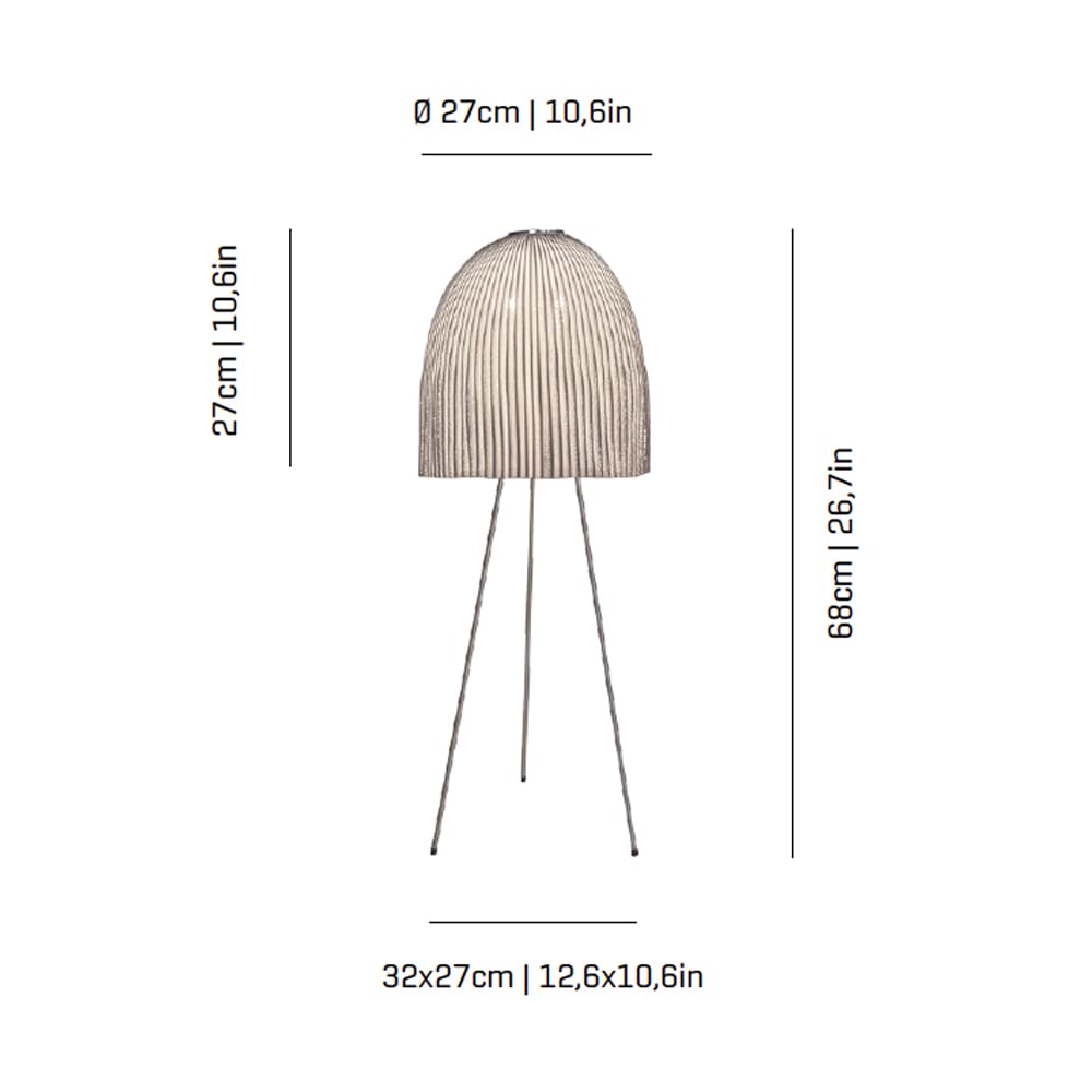 Sorgente luminosa: LED E14 Max. 2×7 W – 230V – 50Hz. Dimensioni: h28cm Ø28cm H68cm