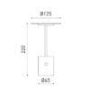 Sorgente luminosa: LED 2,6 W – 2700 K – 400 lumen – CRI>90 – IP20. Driver USB-C Cavo incluso. 3-STEP DIMMING 100% – 50% – 10% – 0% (Spento). Dimensioni: Ø 125 mm H 220 mm