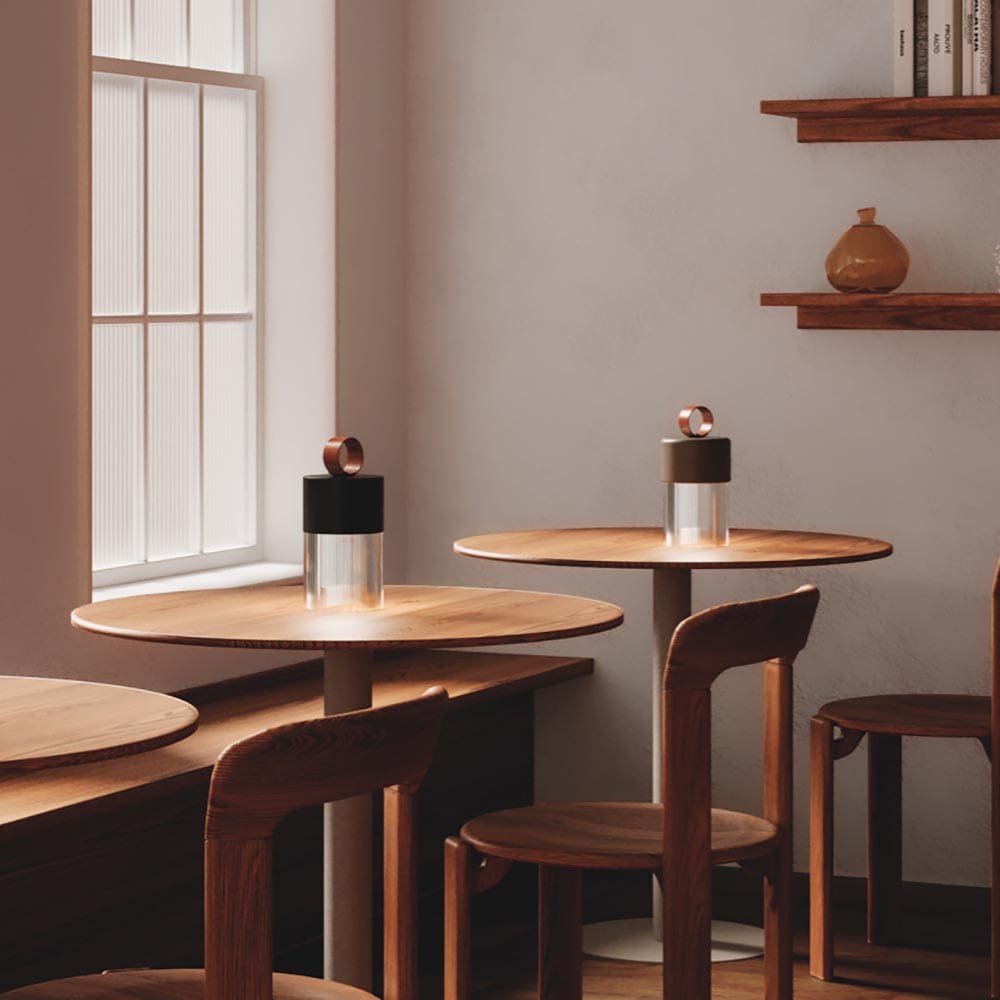 La lampada da tavolo Bora, disegnata da AC Studio per il marchio Aromas del Campo, è un’elegante soluzione di illuminazione portatile che unisce tradizione e modernità. Disponibile in due raffinate finiture, questa lampada offre un’opzione in acciaio nero opaco e oro invecchiato, oppure in ceramica con una varietà di colori, adattandosi perfettamente a qualsiasi stile di arredamento. Entrambi i modelli sono dotati di un paralume in vetro trasparente che diffonde la luce in modo armonioso e un dettaglio in pelle sintetica marrone che conferisce calore e raffinatezza al design complessivo. Questa moderna lampada ricaricabile con funzionalità dimmerabile tramite tocco ha la versatilità necessaria per adattarsi comodamente a qualsiasi spazio.