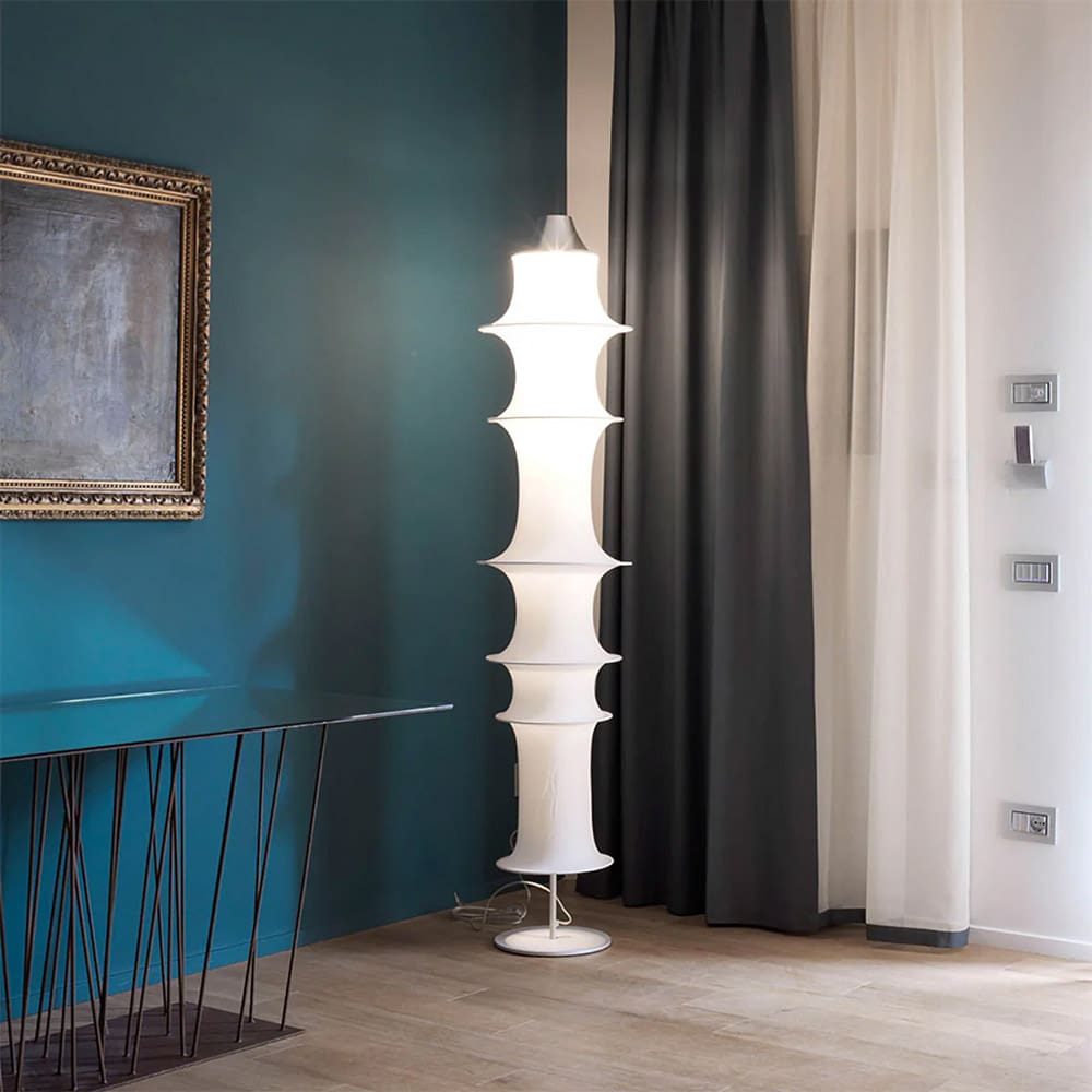 Falkland Floor è una lampada da terra disegnata da Bruno Munari e prodotta dal marchio Artemide, la cui forma nasce dalla tensione di un tubo di filanca e dal peso di alcuni anelli metallici: è una forma spontanea, generata unicamente dalla tensione delle forze interne che la compongono. Sette anelli di metallo di diametri diversi, un tubo di tessuto, una sola lampadina e un riflettore in alluminio che asseconda la forma delle curve del tessuto.