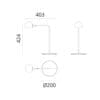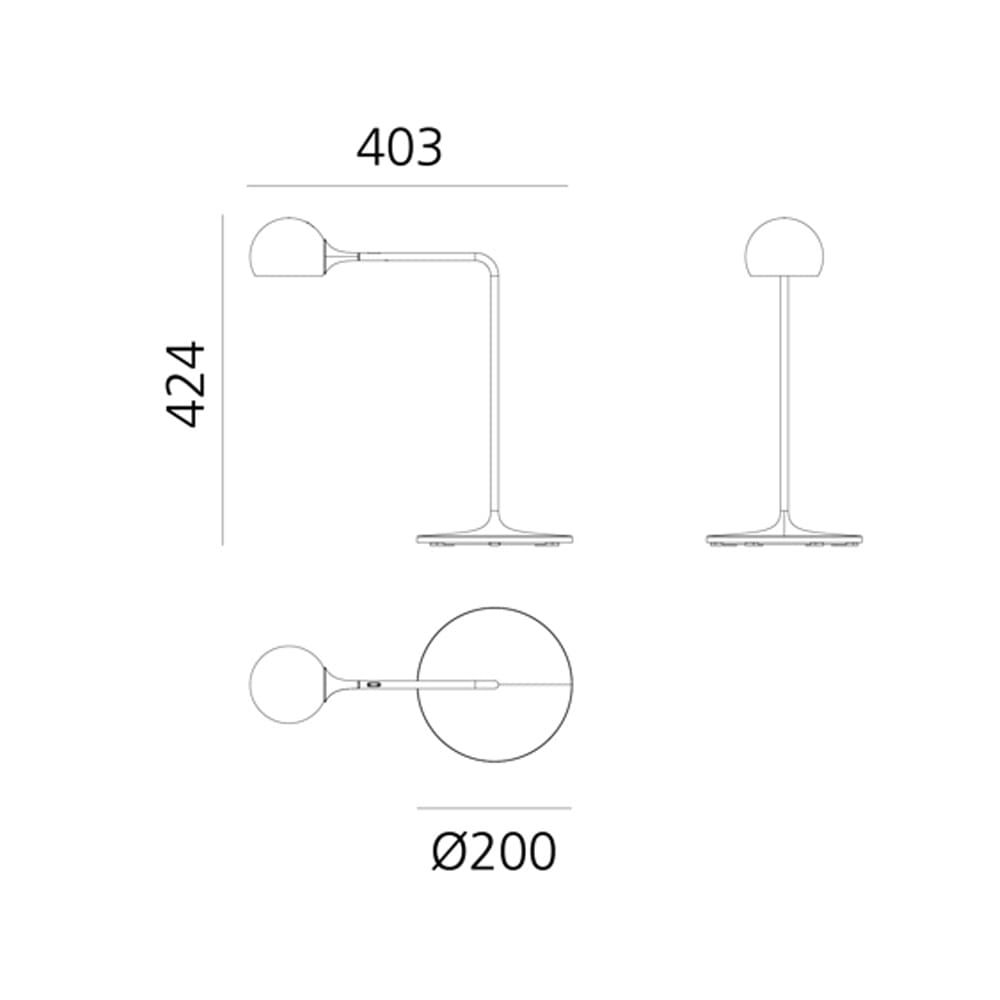 Sorgente Luminosa: LED 9 W – 3000K – 465 lumen – CRI=90 – dimmerabile – IP20. Dimensioni: L 403 mm H 424 mm Ø base 200 mm