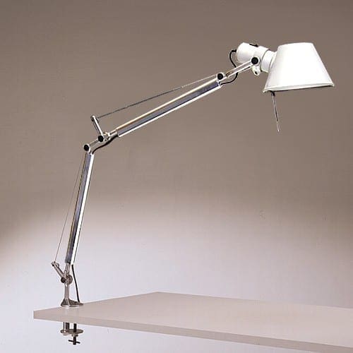 Struttura a bracci mobili in alluminio lucidato; diffusore in alluminio anodizzato opaco o alluminio brillantato; snodi e supporto parete in alluminio brillantato. Sistema di equilibratura a molle.