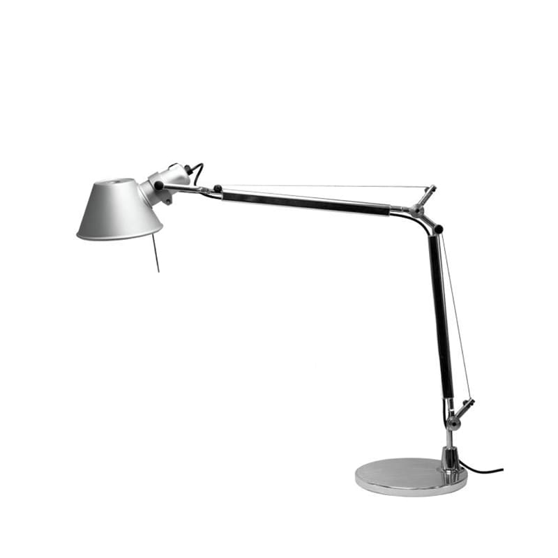 Tolomeo Mini con base tavolo di Artemide, progettata da Michele De Lucchi e Giancarlo Fassina, è una versione più compatta della famosa lampada Tolomeo, pensata per adattarsi a spazi ridotti e aggiungere un tocco vivace all’ambiente. Con il suo design minimalista e la struttura in alluminio, Tolomeo Mini offre eleganza senza tempo, leggerezza e robustezza. La testa orientabile e il riflettore in alluminio assicurano una luce uniforme e flessibile per diverse esigenze di illuminazione. Grazie ai bracci articolati e all’innovativo meccanismo a molle, è possibile regolare facilmente altezza e inclinazione, offrendo massima praticità. Perfetta come lampada da scrivania, per lettura o per creare un’atmosfera accogliente, la Tolomeo Mini conserva il diffusore della versione standard, ma con bracci più corti, rendendola ideale per spazi contenuti.