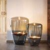BALLOONS medio – tavolo – vetro grigio fumo – riflettore lacca cromata nera