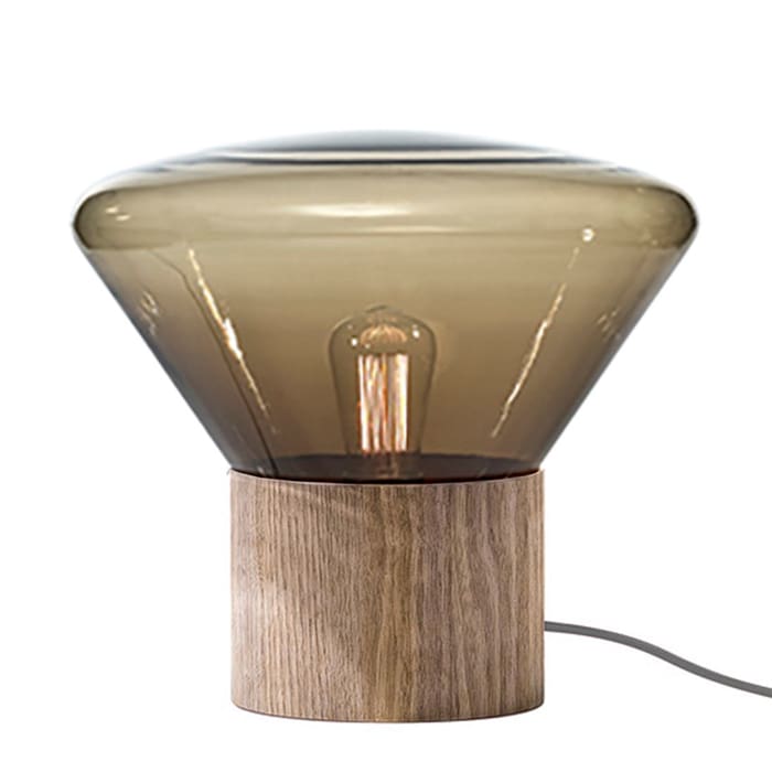 MUFFINS wood 02 – tavolo – vetro marrone – base quercia europea