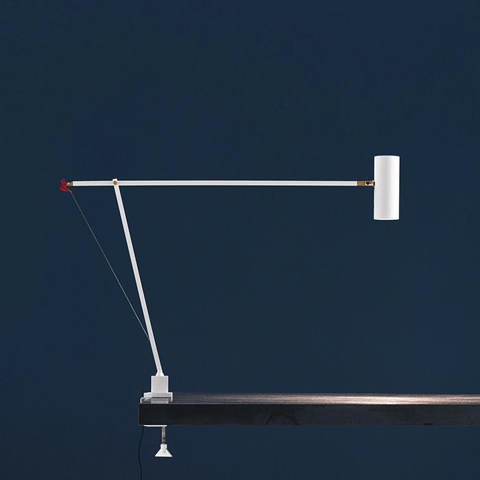 Ettorino Clamp è una collezione di lampade da tavolo disegnata e prodotta dal brand Catellani & Smith. Disponibili anche nelle classiche finiture bianco e nero, le lampade Ettorino giocano nella versione “colourful” con l’elegante accostamento di colori primari, mixando blu, giallo e rosso. Precedute dall’elaborazione di un innovativo sistema cinematico, depositato come brevetto d’invenzione, queste nuove lampade articolate sono caratterizzate da un design essenziale, personalizzato da dettagli inaspettati. Ettorino Clamp, dotata di un morsetto adatto a piani da 5,5 cm, è stata progettata come lampada da scrivania, per offrire una corretta illuminazione sul piano di lavoro, grazie alla possibilità di movimento e di rotazione della lampada.