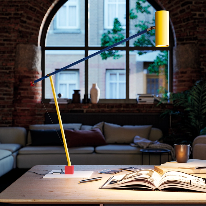 Ettorino T è una collezione di lampade da tavolo disegnata e prodotta dal brand Catellani & Smith. Disponibili anche nelle classiche finiture bianco e nero, le lampade Ettorino giocano nella versione “colourful” con l’elegante accostamento di colori primari, mixando blu, giallo e rosso. Precedute dall’elaborazione di un innovativo sistema cinematico, depositato come brevetto d’invenzione, queste nuove lampade articolate sono caratterizzate da un design essenziale, personalizzato da dettagli inaspettati. Ettorino T è stata progettata come lampada da scrivania, per offrire una corretta illuminazione sul piano di lavoro, grazie alla possibilità di movimento e di rotazione della lampada.