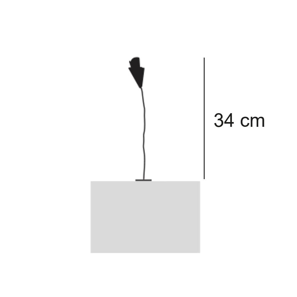 Sorgente luminosa: LED ambra 1x1W / potenza nominale 1W – 93,5 lumen – K 1878 – CRI 58. Alimentatore USB 110-240V con spina EU o UK / input 110/240V – output 5V @1,2 A – push dimming incluso. Dimensioni: H 34 cm