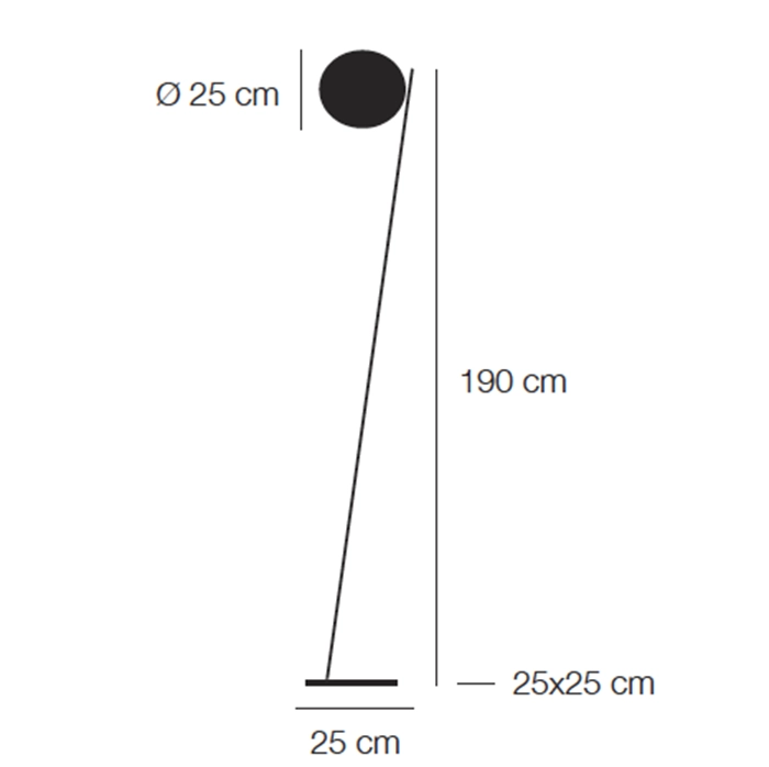 Sorgente luminosa: COB LED 1x17W 500mA 2700K – lumen 2500 – CRI 80 – 110-240V plug driver con dimmer da terra. Dimensioni: base 25ร25 cm, H 190 cm, larghezza 25 cm