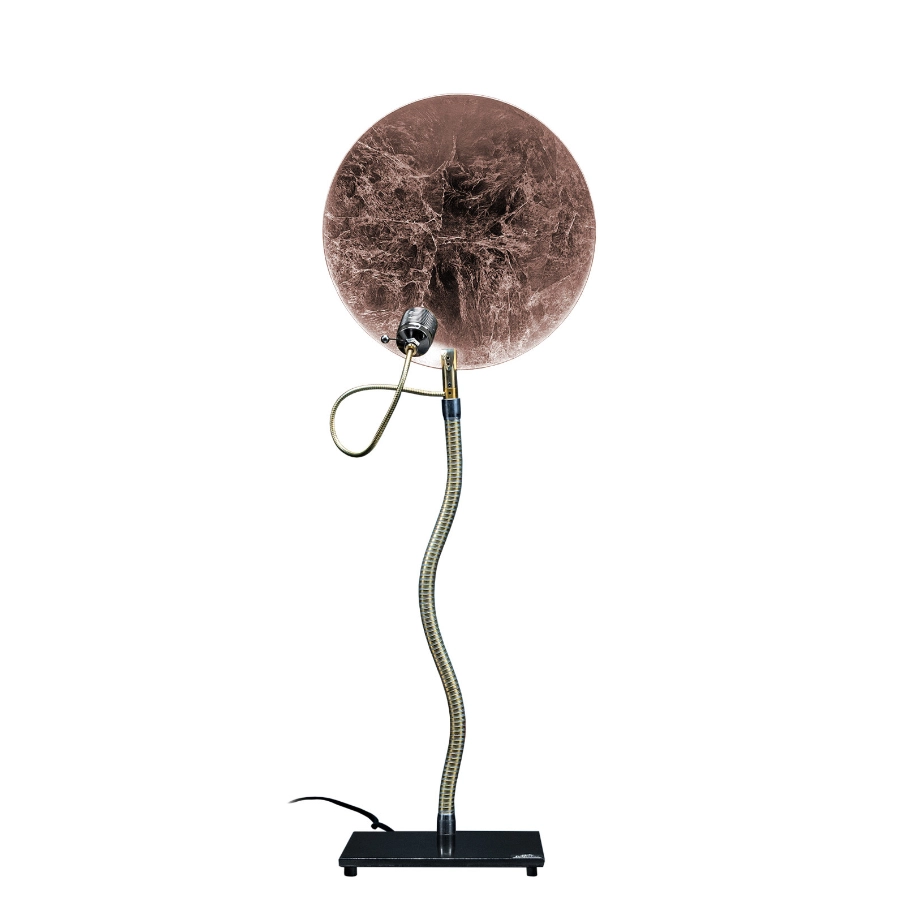 Sorgente Luminosa: LED GU4 12V 1×3,5W K 2700 – lumen 140 – CRI 80 -110-240V con on/off – Dimensioni: base 21×21 cm, disco Ø 30 cm, H max 85 cm