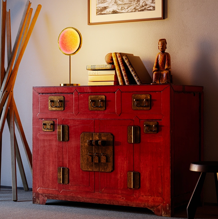 Talismano è la nuova lampada da tavolo disegnata da Giulia Archimede in collaborazione con il Team Products Development di Catellani & Smith. La sua struttura in ottone racchiude un vetro iridescente, risultato di una lunga sperimentazione e di un complesso procedimento di lavorazione, articolato in diverse fasi, grazie alle quali si è ottenuto il particolare effetto che lo caratterizza e rende unico ogni singolo pezzo.
