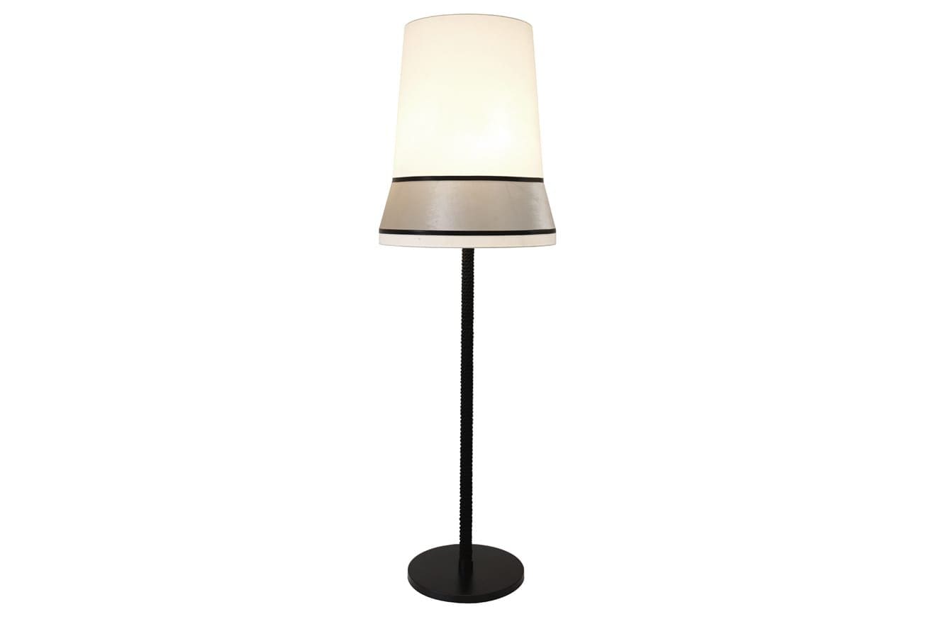 Prodotto icona ispirato al famoso cappello indossato da Audrey Hepburn nel celebre film “Colazione da Tiffany”. Pensato per ambienti esclusivi ed eleganti e realizzato come vero e proprio esercizio di stile: stelo in seta intrecciata, paralume in cotone con banda in velluto e passamaneria in raso. Pensato per ambienti eleganti quali lobby, boutique, clubs, ristoranti ma anche un residenziale di classe.
