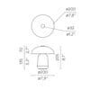 Sorgente Luminosa: 1 x 3,5W Modulo LED – 550 lumen – 2800 K – CRI>90 – batteria autonomia 8 ore – Dimmerabile, due intensità – IP20. Dimensioni: H 205 mm Ø 200 mm