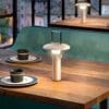 Camping si ispira alle vecchie “luci da campeggio”, ovvero le lampade a olio trasportabili con una maniglia, così iconiche nell’immaginario comune. Una silhouette modernizzata con un’attenzione specifica alla tecnologia, alla portabilità e alla qualità. Una lampada portatile e ricaricabile utilizzando il caricabatterie in dotazione ed esteticamente accattivante: la piastra della lampada e la maniglia possono essere posizionate a diverse altezze, influenzando l’emissione luminosa circostante.
