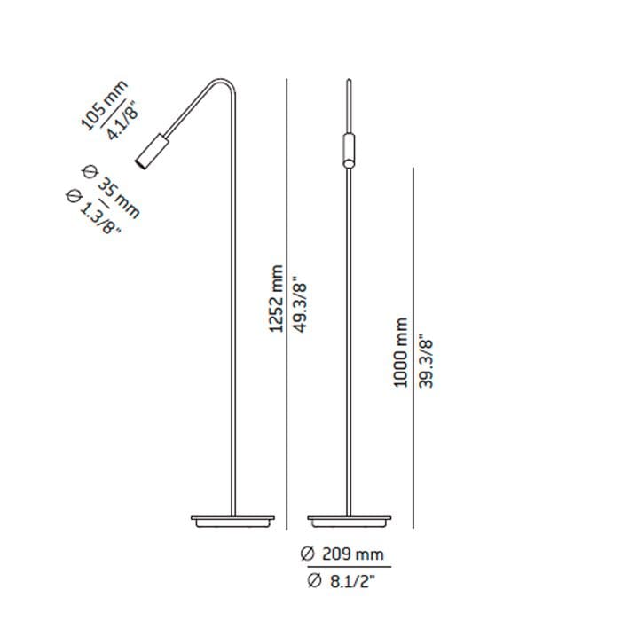 Sorgente luminosa: LED 6,1W 2700K tipo 565 lumens – Ang. 120º – CRI 90 – 350mA – 230V – Dimmer a pulsante sulla testa