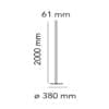 Sorgente luminosa: LED 57W – 2700 K – 3240 lumen – CRI> 95 – 100-240/48V – Dimmer integrato – IP20. Dimensioni: Ø 38 cm H 200 cm
