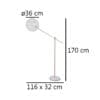 Sorgente luminosa: LED 60W E27 IP20. Dimensioni: L 116 cm Ø 36 cm W 32 cm H 170 cm